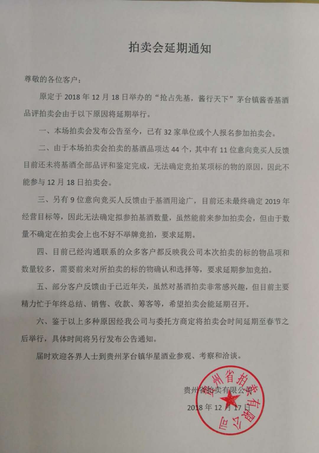 延期拍卖通知